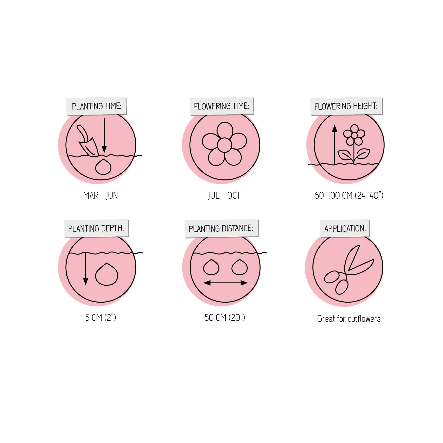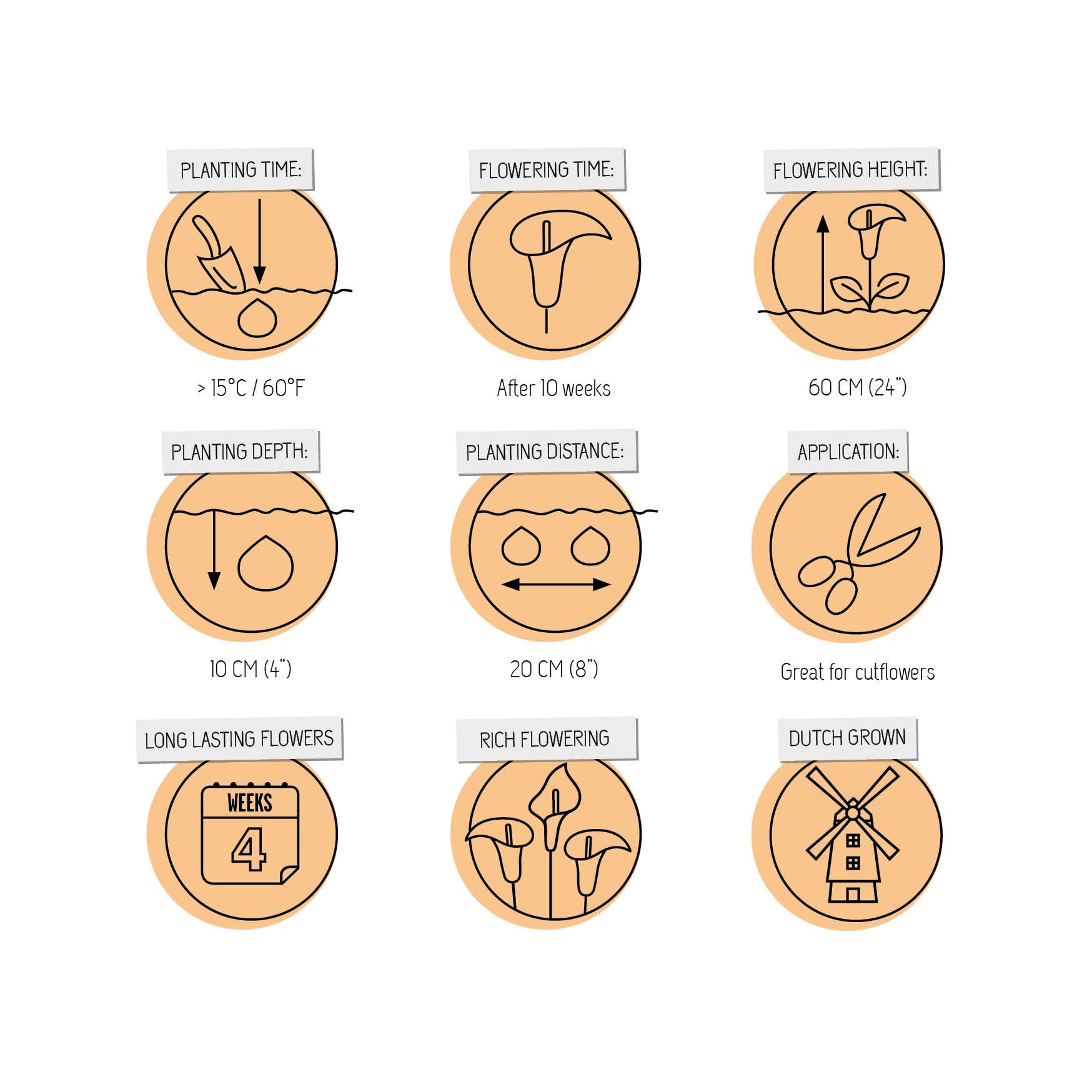 Our Calla Lily and Dahlia bulbs are suitable for planting in zones 7 – 10.